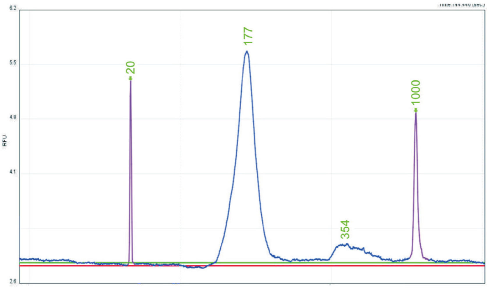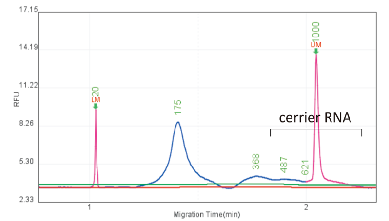 cfDNA sample extracted with carrier RNA. Carrier RNA signal merge with multimers.