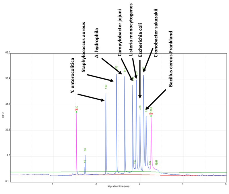 The bright green and brown peaks represent the different strains of Torreya grandis than other peaks. Strains identification was performed by using the S1 cartridge in Qsep100 bio-fragment analyzers.