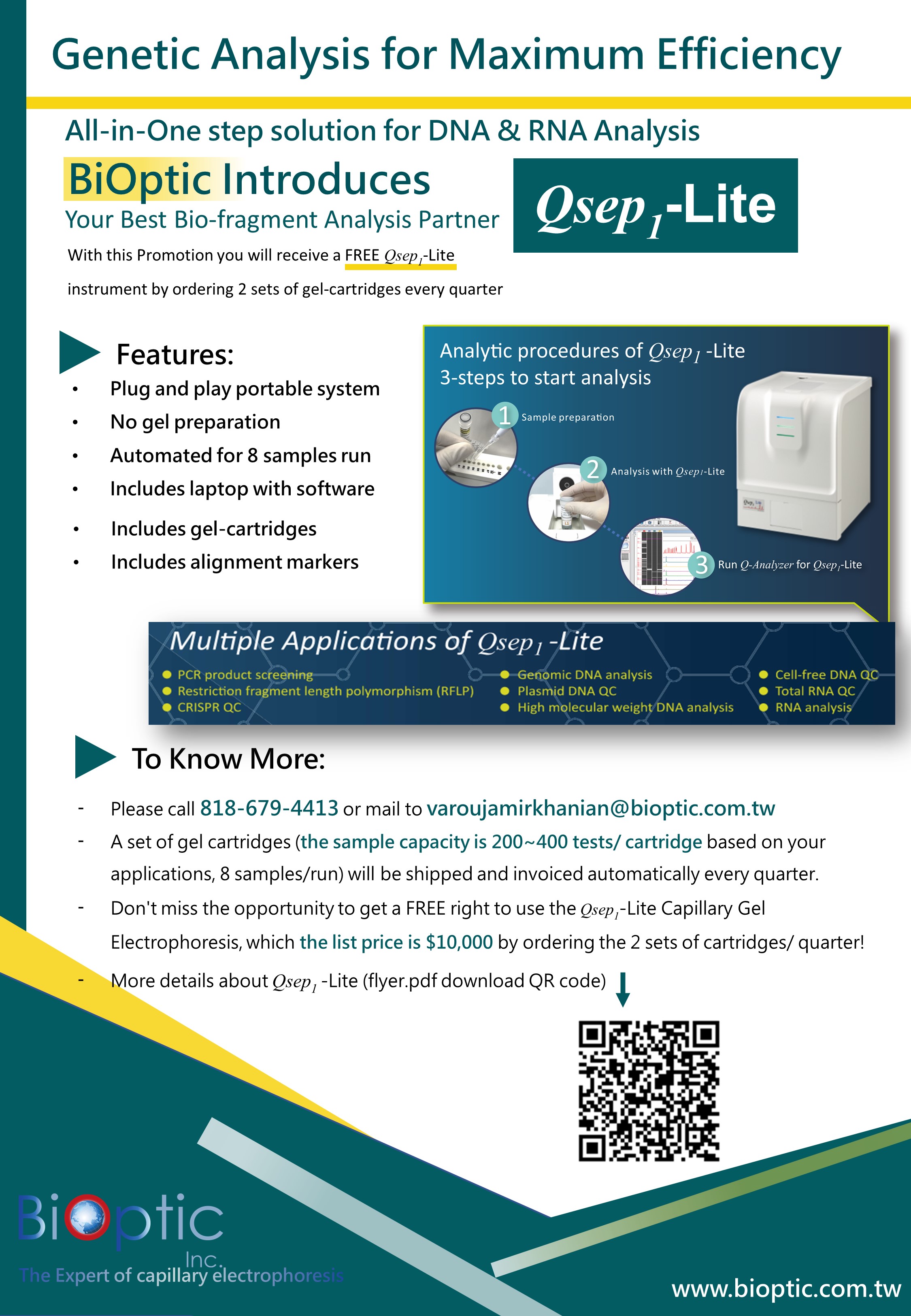 With this Promotion, you will receive a FREE Qsep1-Lite instrument by ordering 2 sets of gel cartridges every quarter