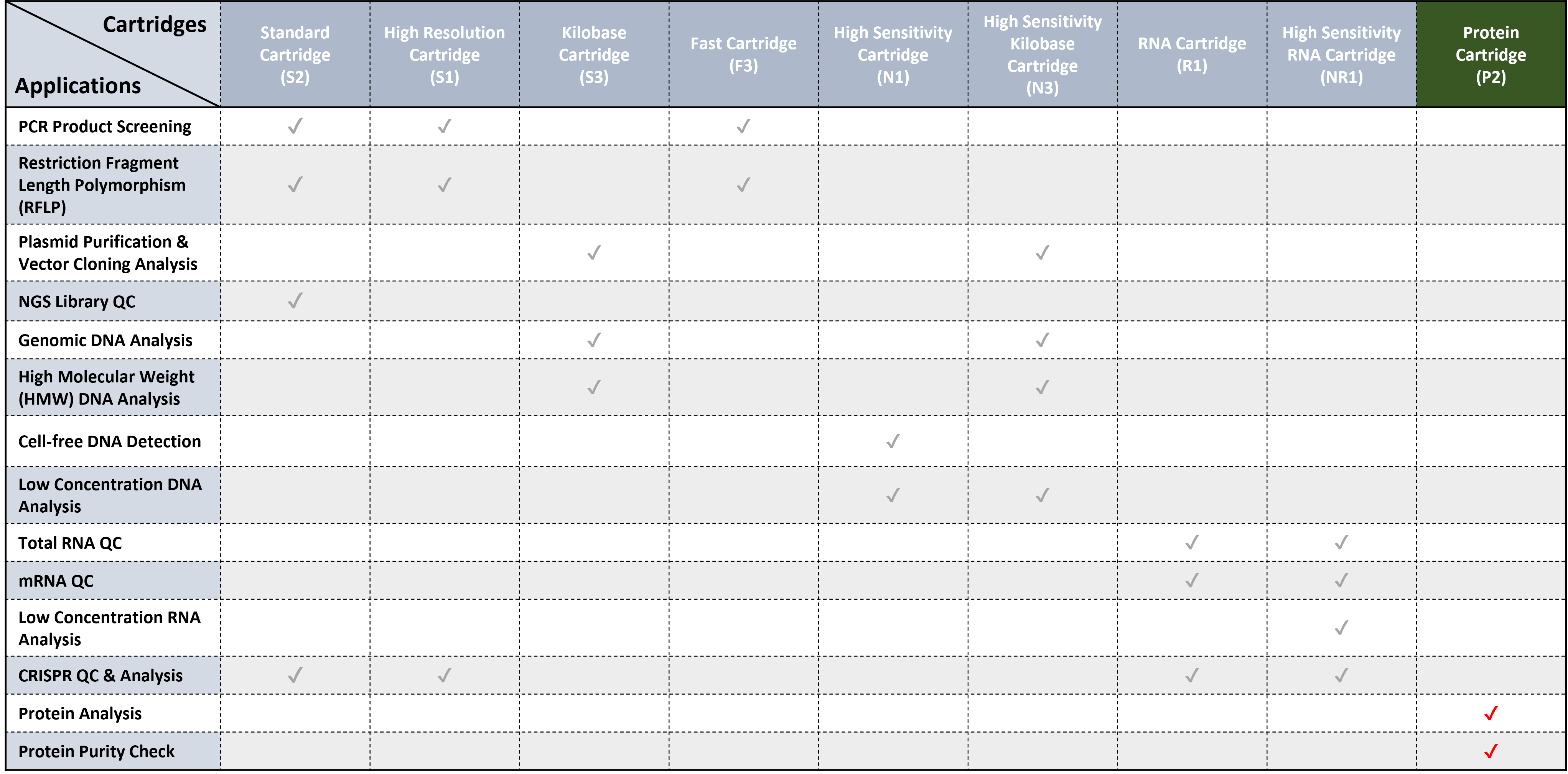 - The cartridge analyzes protein sample size and purity with higher sensitivity and resolution.