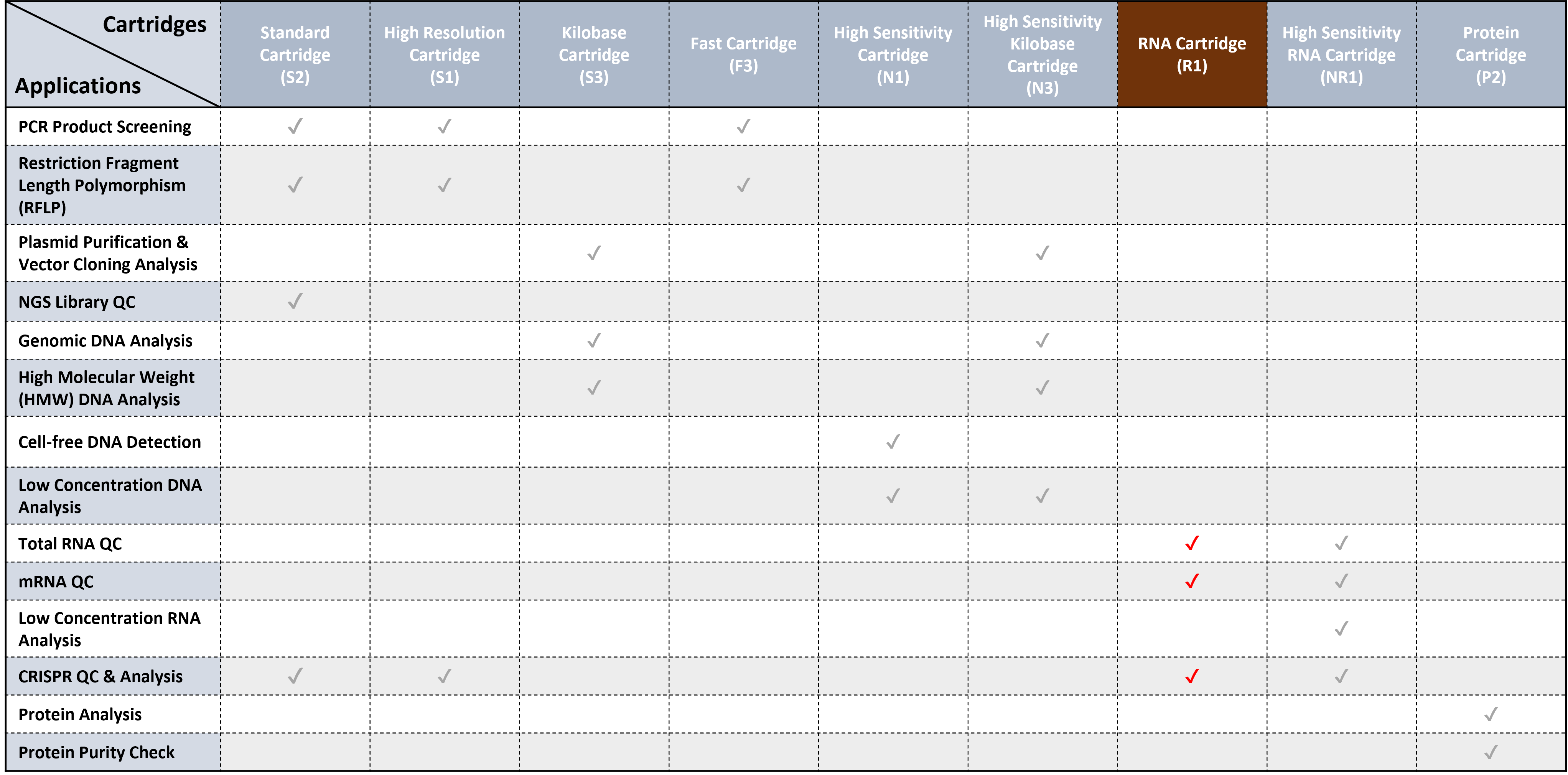 R1 cartridge is specific to RNA analysis. It supports quality control of total RNA and identifies integrity and degradation degree of RNA. After the analysis, the system will provide reference value of RNA Quality Number (RQN) and image for user to further evaluate the possibility of conducting the following examinations.