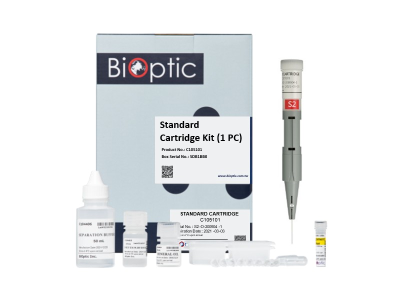 S2 標準卡匣組適用於一般 DNA 片段分析以及 NGS Fragmentation 及 Library 樣品分析,用途廣泛,除了一般 PCR 產物,亦可分析 RFLP 及 CRISPR 樣品。依據搭配不同的 Alignment marker,可分析的片段範圍有些不同,最大的建議適合範圍可至 5,000bp,根據不同的分析方法,分析時間約 2~3 分鐘。